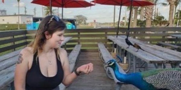 I train birds like this peacock using positive reinforcement, building trust, confidence, and cooperative behaviors for easier handling and a stronger bond